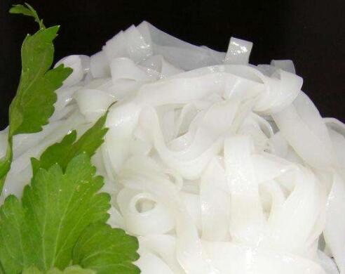 近些年來,市場上也出現了一些大大小小的廠家生產的河粉機;他們主要結構包括進料斗、輸送帶、蒸箱等,其工作原理是面水通過進料斗自動流到輸送帶由一個圓柱形滾筒滾壓成型,由輸送帶輸入蒸汽箱蒸好后被輸送出來。與手工制作河粉相比,該種河粉機減少了操作者的勞動強度。但是該種河粉機是由布帶輸送,與手工金屬容器制作出的質量有一定區別,且機器溫度只能剛好達到熟河粉的溫度,所以制作出來的河粉保質時間短,口感一般。